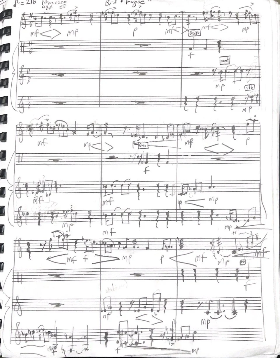 a look at my early sketches, as I worked to create a fugual dialgue between the different bird calls